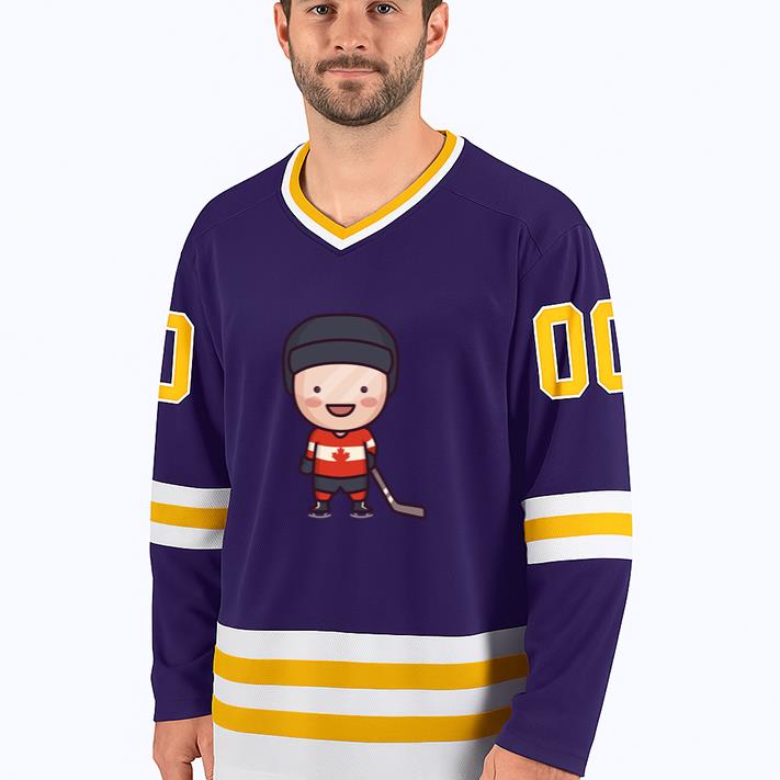 Cute Canadian Hockey Player Character Hockey Jersey Hockey Jersey – Classic Team-Style Long-Sleeve Jersey with Breathable Fabric and Athletic Fit
