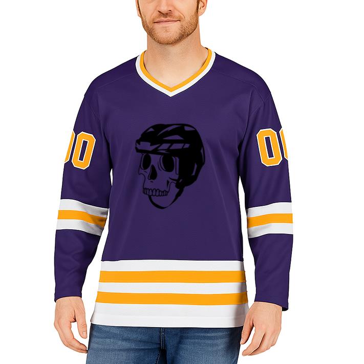 Our Hockey Helmet Skull High Contrast Hockey Jersey Hockey Jersey captures the authentic look and feel of classic rink uniforms while offering everyday comfort and style. Made from a durable polyester mesh blend, this jersey is lightweight, breathable, and designed for unrestricted movement — ideal for both athletes and fans alike.