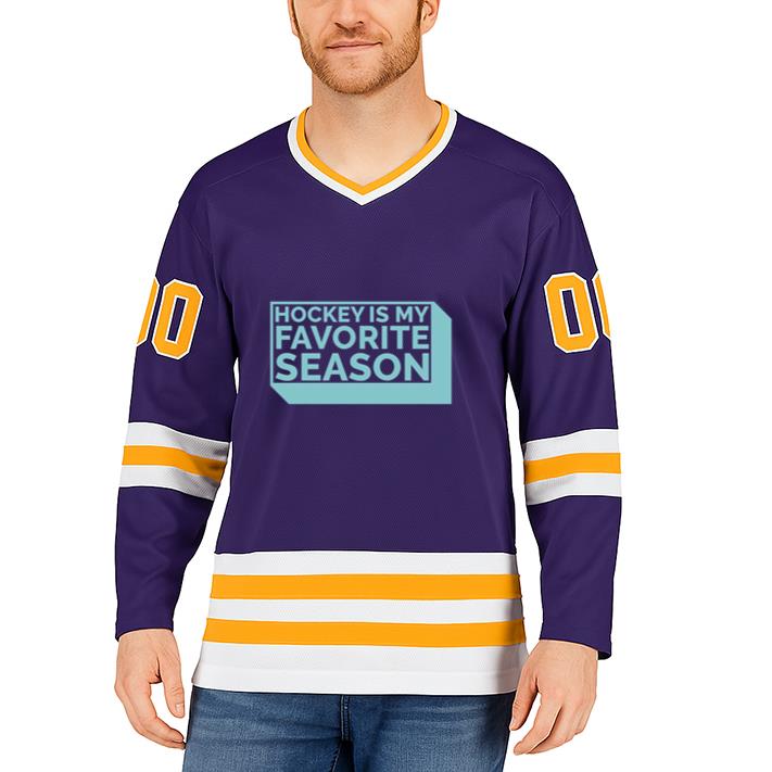 Our Hockey Is My Favorite Season Quote Cut Out Hockey Jersey Hockey Jersey captures the authentic look and feel of classic rink uniforms while offering everyday comfort and style. Made from a durable polyester mesh blend, this jersey is lightweight, breathable, and designed for unrestricted movement — ideal for both athletes and fans alike.