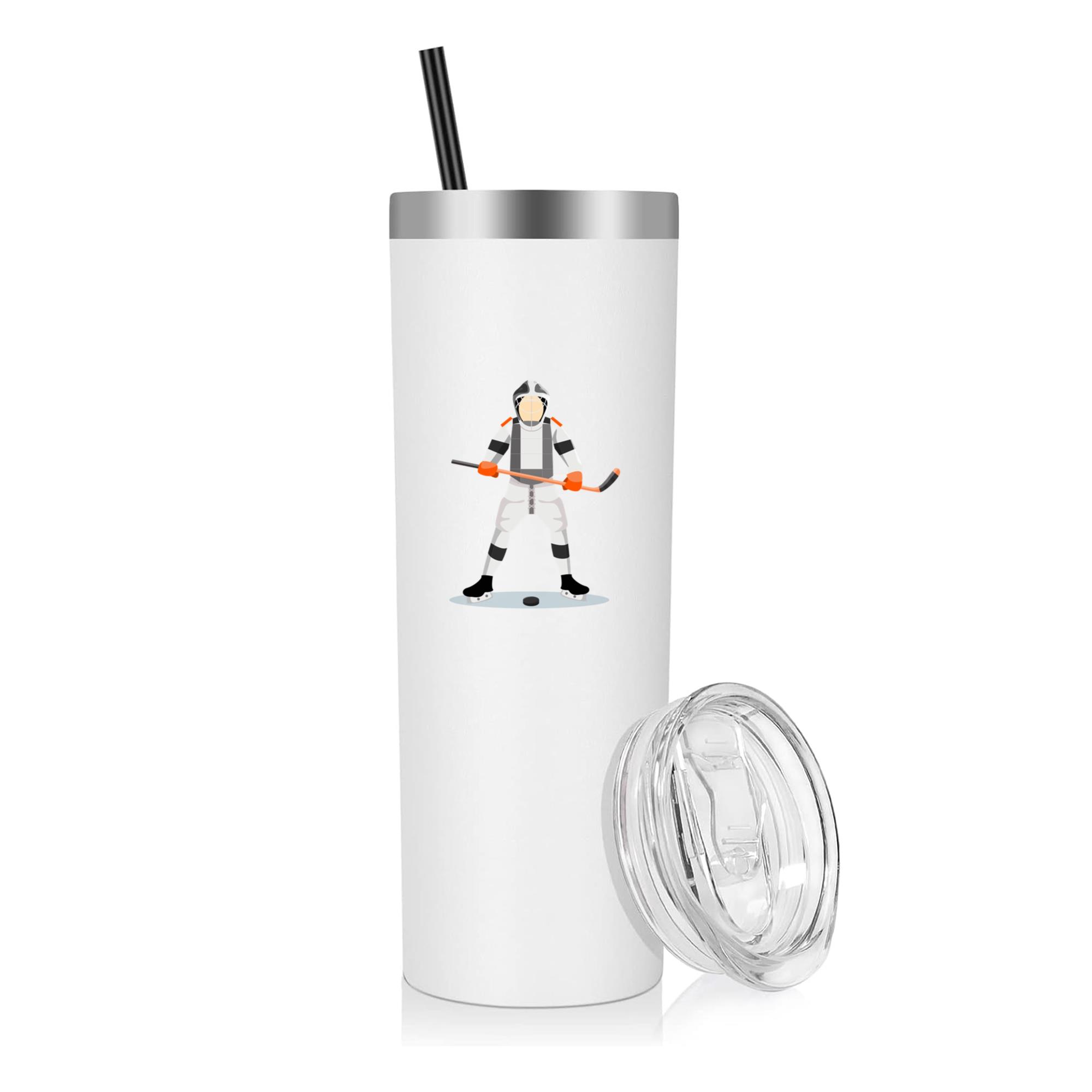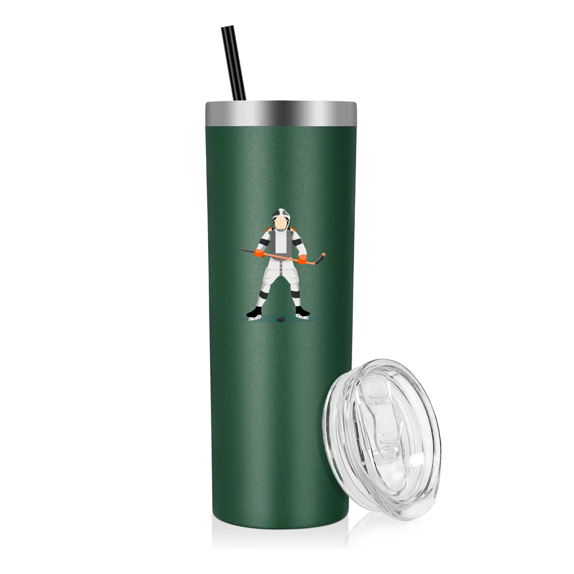 Hockey Player Player Stick Flat 20oz Stainless Steel Tumbler 20oz Stainless Steel Tumbler – Double-Wall Vacuum Insulated Travel Cup with Lid