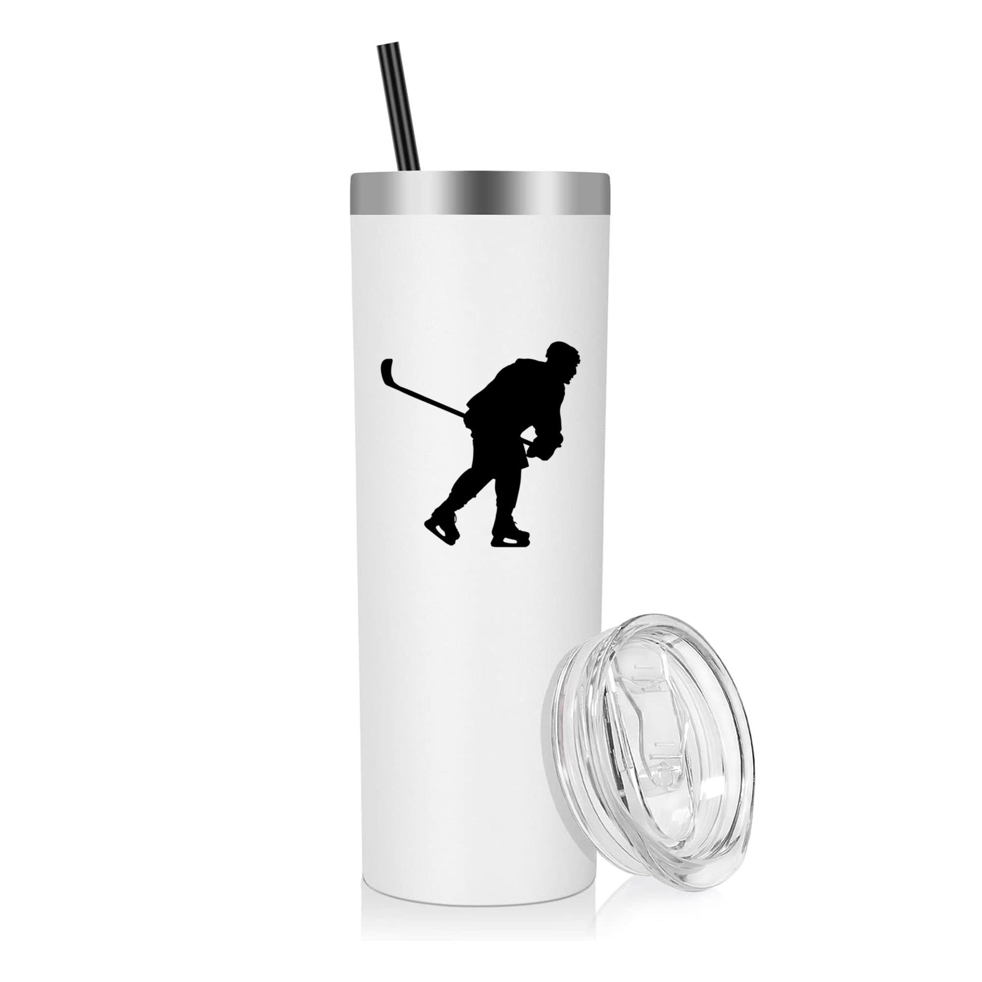 Hockey Player Skating Silhouette 20oz Stainless Steel Tumbler 20oz Stainless Steel Tumbler – Double-Wall Vacuum Insulated Travel Cup with Lid