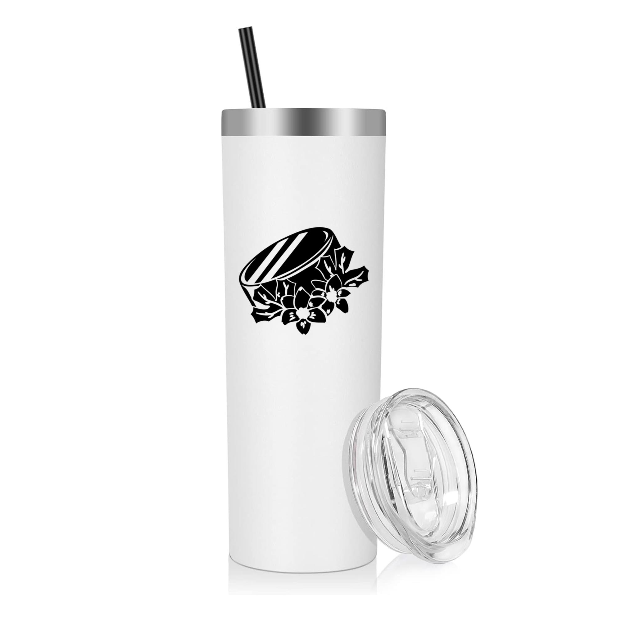 Ice Hockey Puck With Flowers High Contrast 20oz Stainless Steel Tumbler 20oz Stainless Steel Tumbler – Double-Wall Vacuum Insulated Travel Cup with Lid