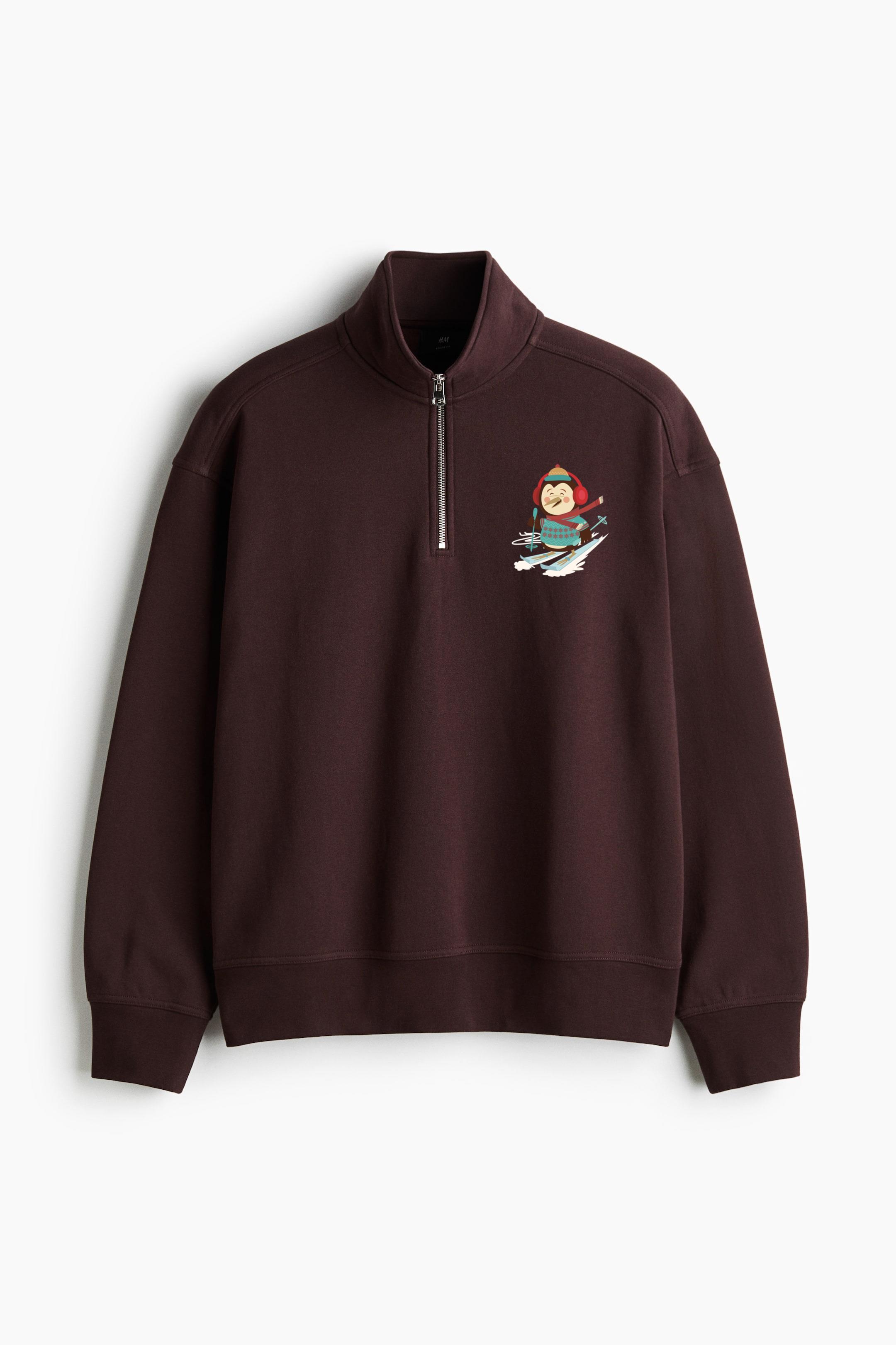 Penguin Skiing Cartoon Loose-Fit Sweatshirt Collar Jacket Loose-Fit Sweatshirt Collar Jacket – Casual Zip-Up Fleece Jacket with Ribbed Collar and Relaxed Silhouette